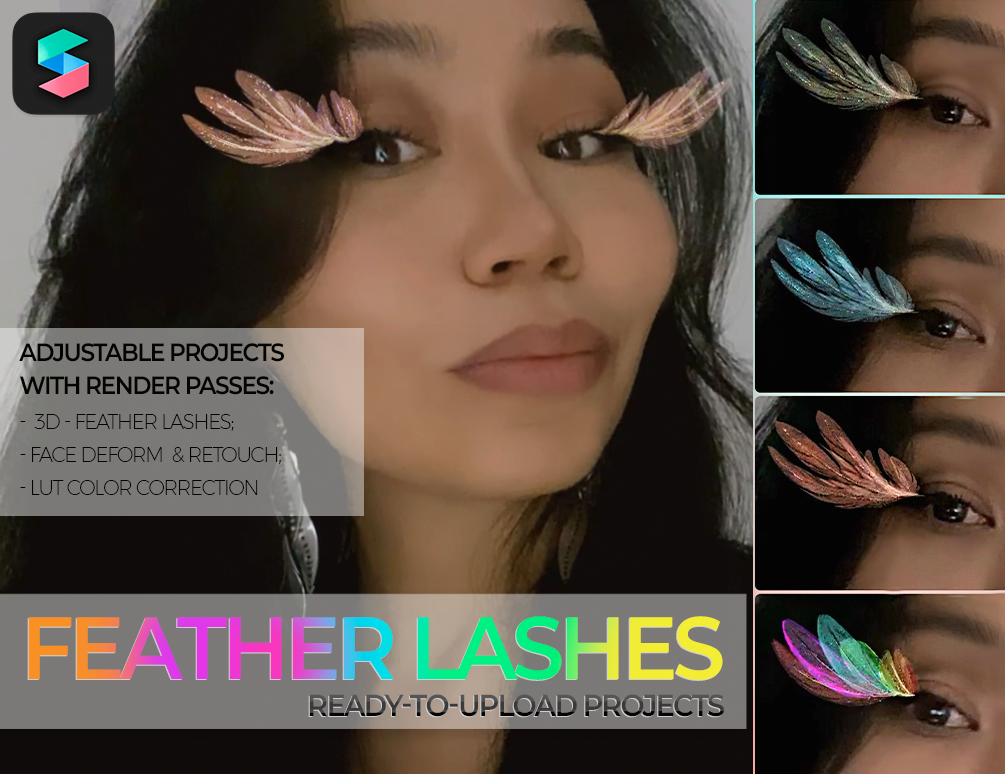 ''Feather Lashes'' effects - 2 'ready to upload' customizable projects in .arexport format files (Spark AR v.168.0).