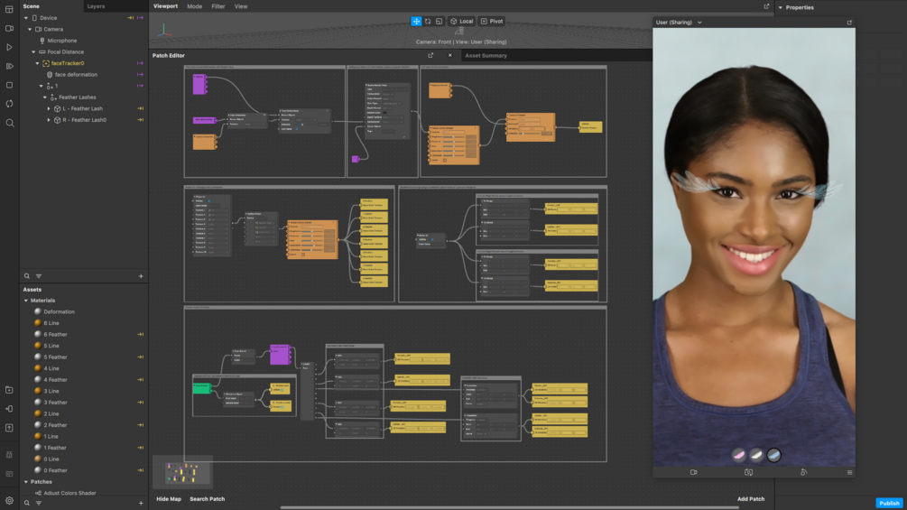 Two 'ready to upload' projects in .arexport format (v.168.0 Spark AR), 3d-model of feather lashes (.fbx) with UV-map / Готовые к загрузке 2 проекта в формате .arexport (v.168.0 Spark AR), 3d-модель перьевых ресниц (.fbx) с UV-разверткой.