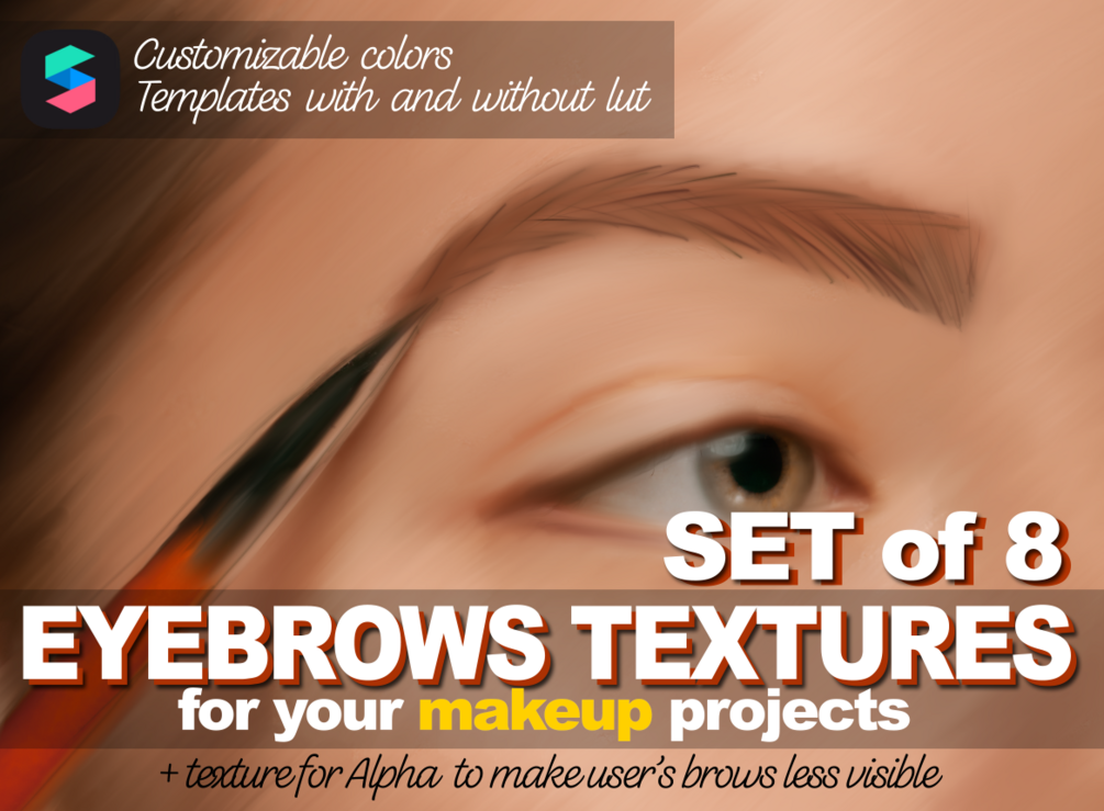 Проекты с / без LUT (легко заменить) + проекты с текстурой для Альфа-канала, чтобы сделать брови пользователя менее видимыми. Чтобы достичь более натурального эффекта заполненной формы бровей, лучше использовать текстуру бровей с 10-45% непрозрачностью материала.